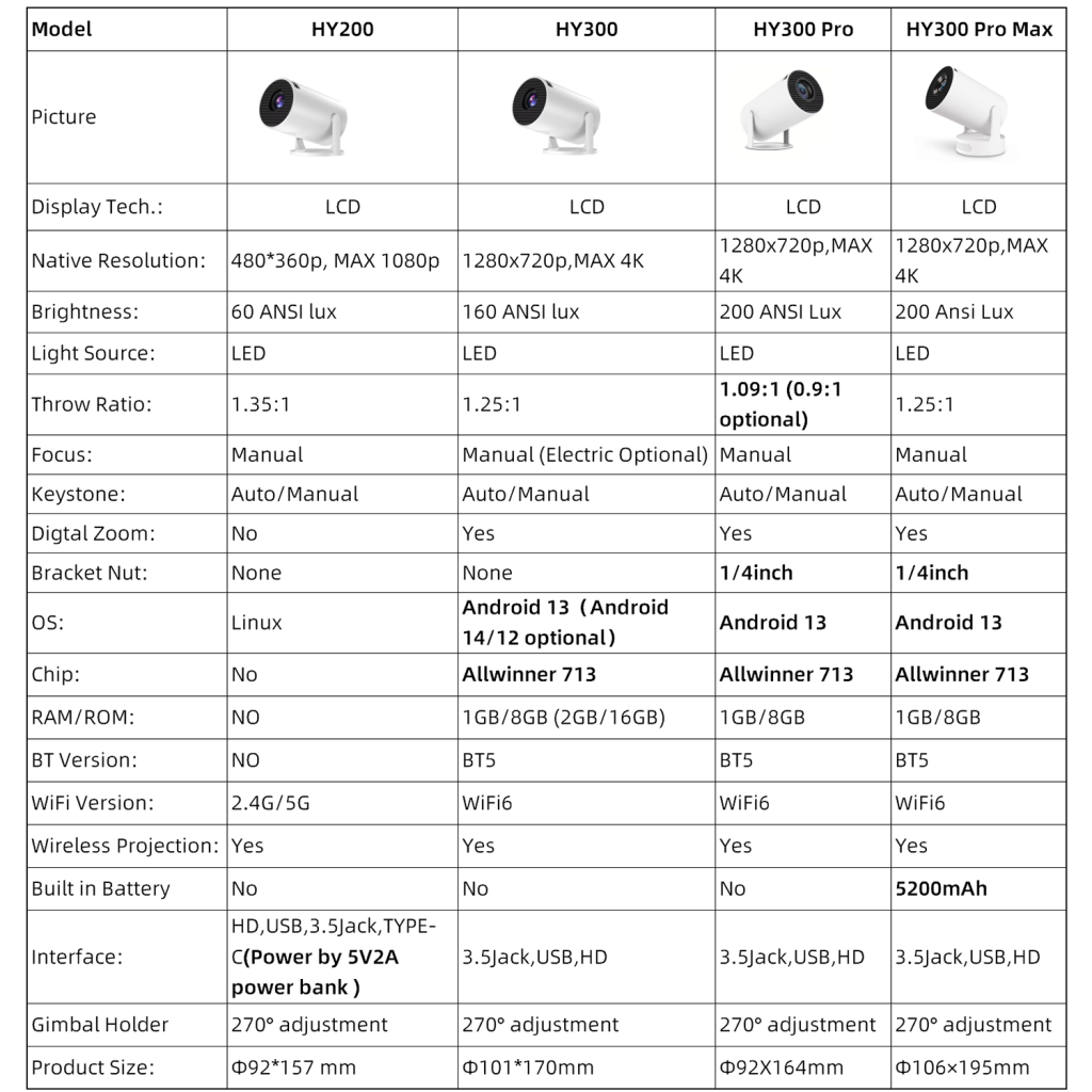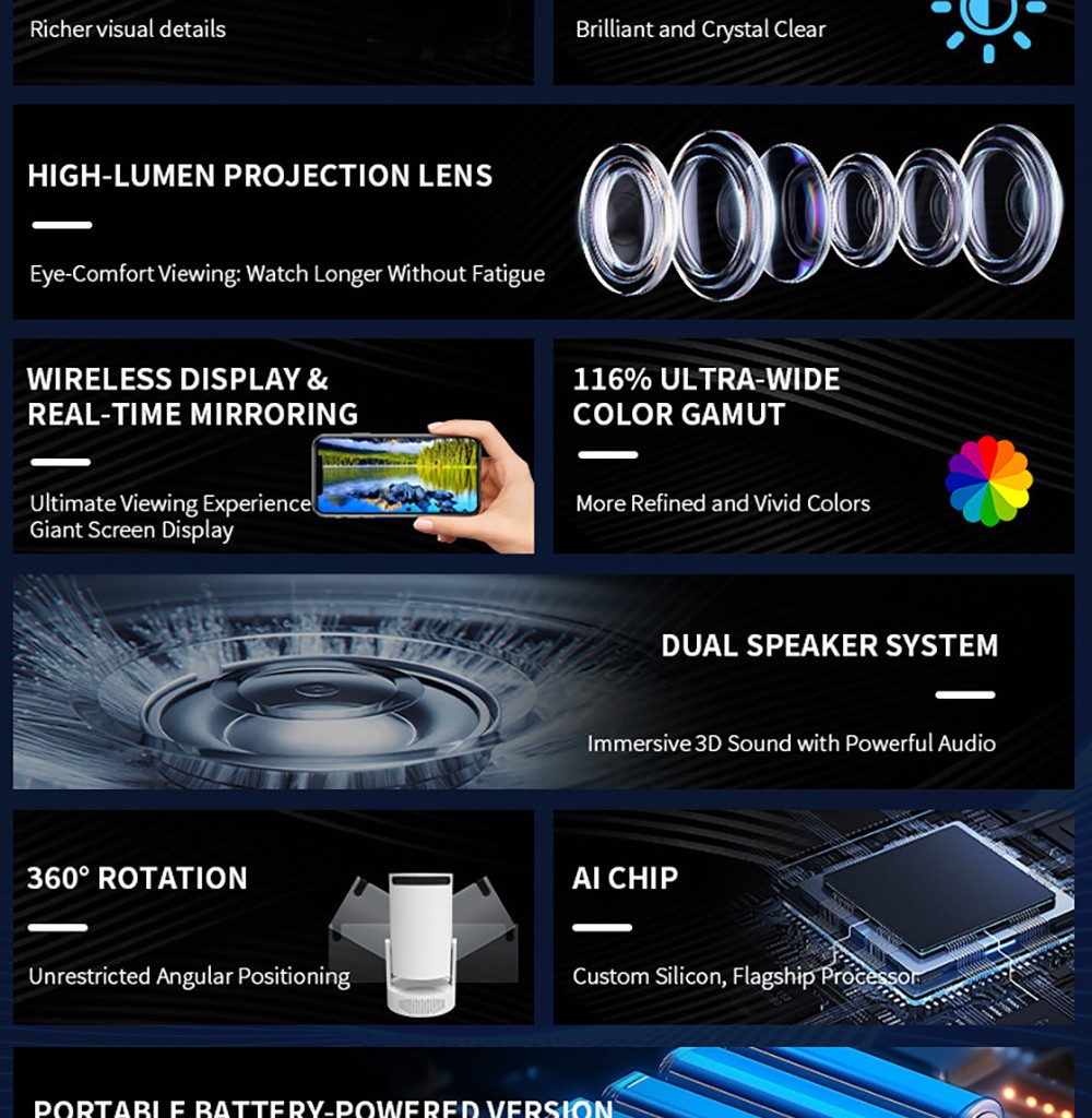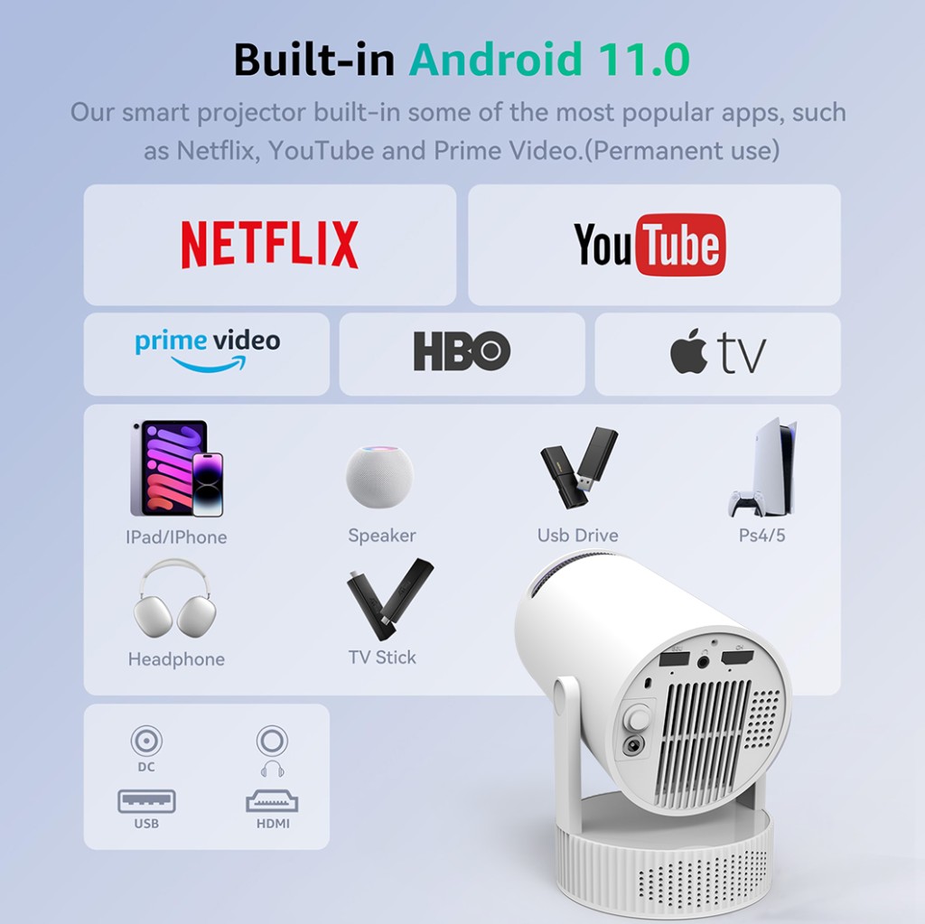 ویدیو پروژکتور شارژی مدل HY300 PROMAX 4K سینمای خانگی و فضای باز